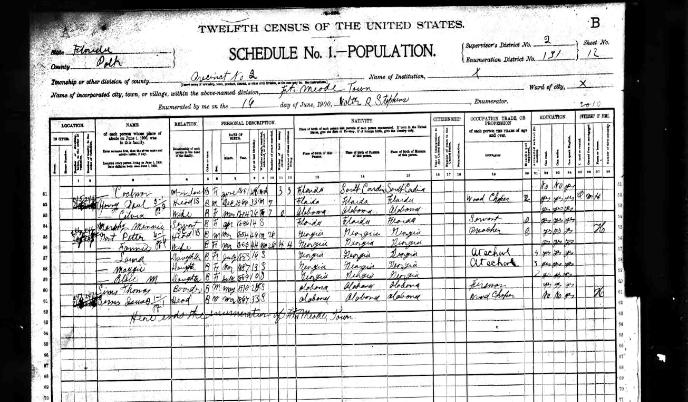 Thomas Sims is listed in the Ft. Meade, Florida census as