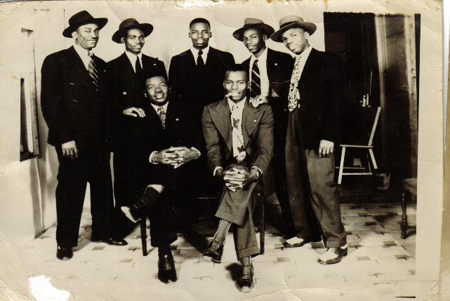Sons of Thomas and Maggie Sims, Back from left: Thomas E., Filmore, Paul, Elihue, Barney. Front sitting from left: Ernest E. and Delbert M. Sims c.1953